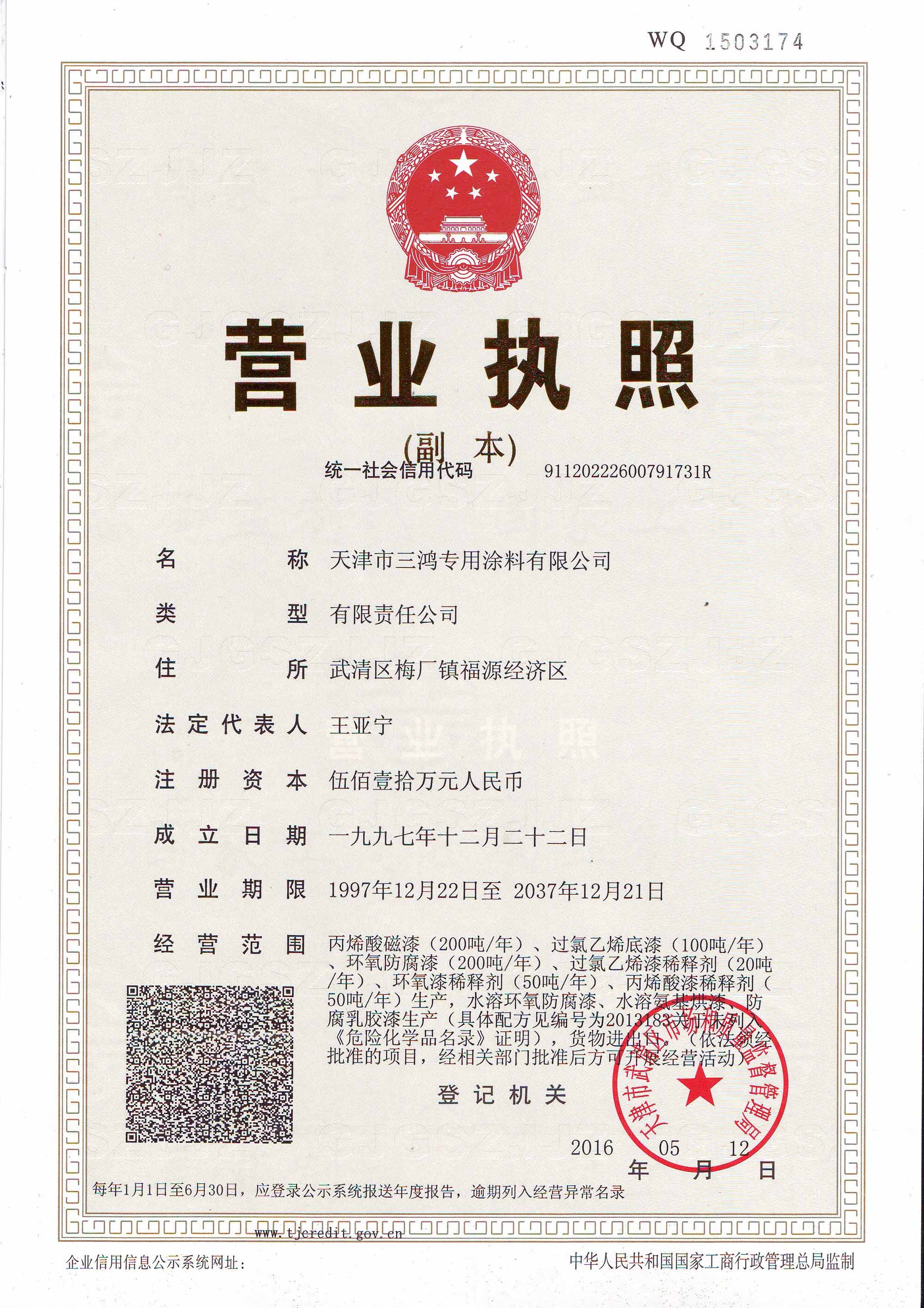 天津市三鸿专用涂料有限公司