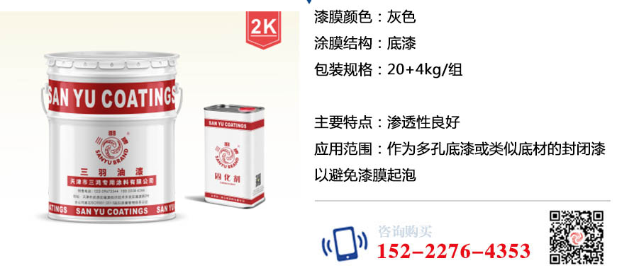 环氧封闭漆是一种双组份酰胺环氧固化涂料,对多孔底漆、及混凝土结构表面具有良好的渗透性。