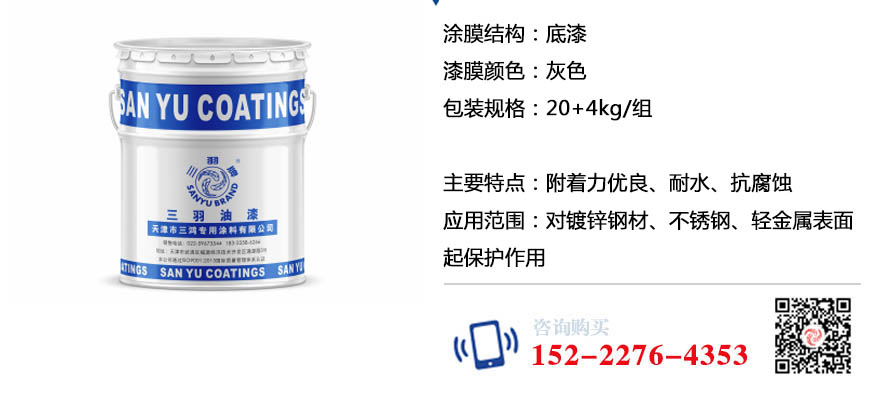 适用于不锈钢、镀锌、铝合金等轻金属表面防腐涂装使用。也可用于不能表面处理(带锈、潮湿)干净的钢结构表面。