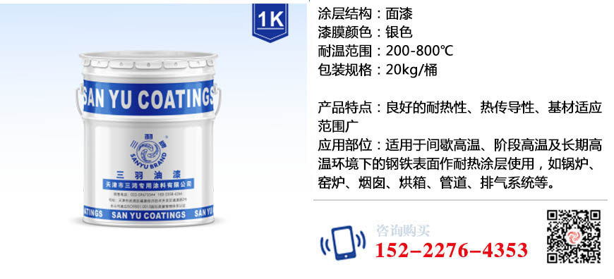 适应用于200-1200℃以下工作的零件,也可用于冶金、航空、电力等高温部分设备,防腐如钢厂高炉、热风炉外壁、高温烟囱、烟道、高温热气管道、加热炉、热交换器等。该漆具有室温干燥耐高温,良好的机械性能。