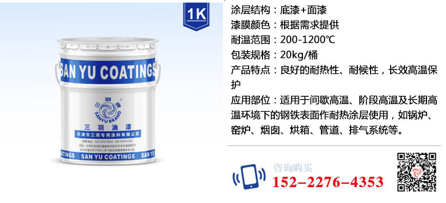 适用于200-1200℃以下工作的零件,可用于冶金、航空、电力等高温部分设备,防腐如钢厂高炉、热风炉外壁、高温烟囱、烟道、高温热气管道、加热炉、热交换器等。该漆具有室温干燥耐高温,良好的机械性能。