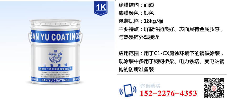 涂银涂料自干型替代镀锌;与冷涂锌配套作为面漆使用可替代热浸锌,复合涂层防腐蚀效果更佳。冷涂银涂料自干型表面具有金属质感,与热浸锌 外观接近。