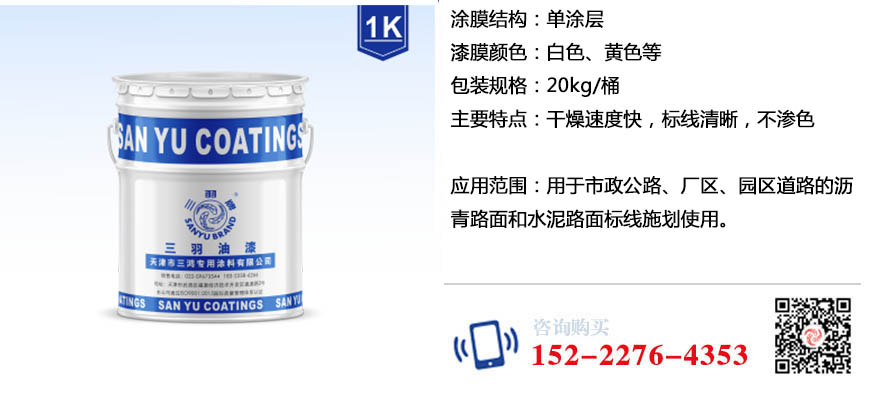 该漆干燥速度快、施工后交通开放快,漆膜清晰可见度高,对沥青路面不渗色,耐候性好,附着力好。