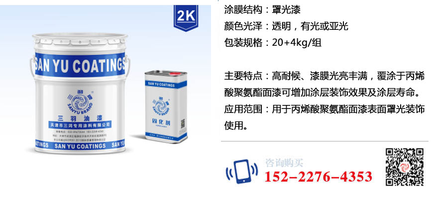 丙烯酸聚氨酯罩光清漆为双组份自干型清漆,成份一为羟基丙烯酸树脂,成份二为氰酸酯缩二脲,两组份分装按规定比例配漆。