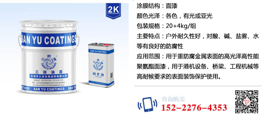 用于新建设施或作为维修保养面漆使用,如桥梁、海港机械、工程机械面漆、高档机械产品、桥梁及有高耐候要求的表面装饰保护使用。