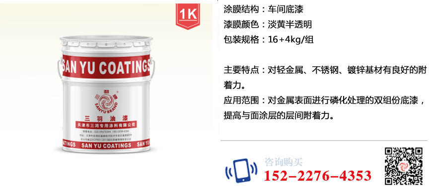 作为预涂底漆使用,可用于航空、航天、船舶、电子、机械、桥梁等行业的有色金属表面和镀锌钢结构防护涂装。